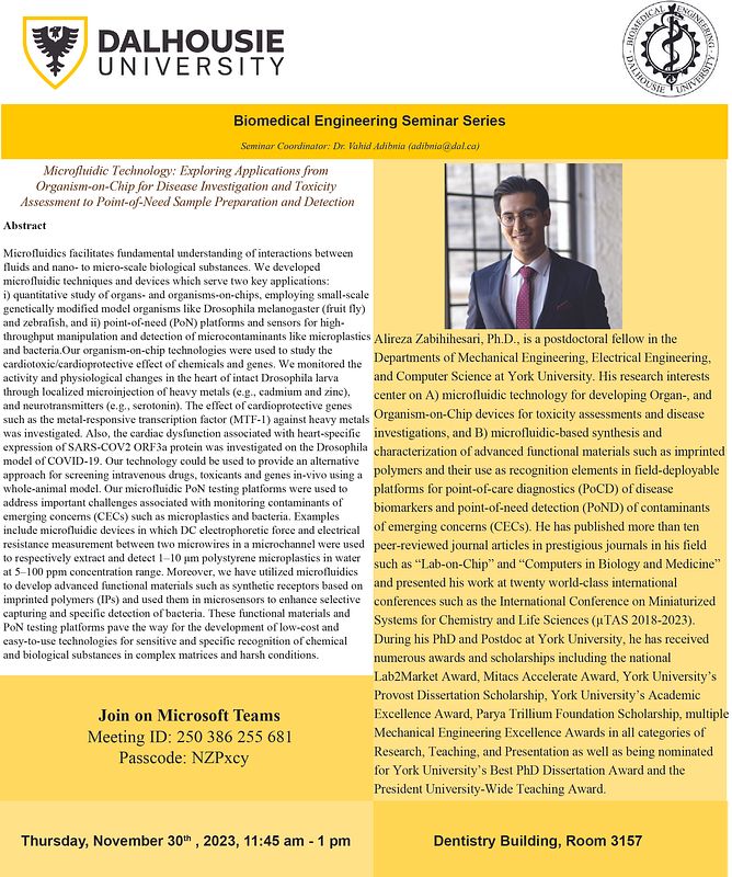Invited to present at the School of Biomedical Engineering (SBME) Seminar at Dalhousie University